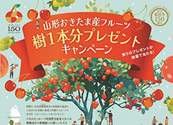 期間中、山形県置賜地方の対象宿泊施設にご宿泊のお客様に抽選でさくらんぼ樹1本分や米沢牛、フルーツジュースをプレゼント!