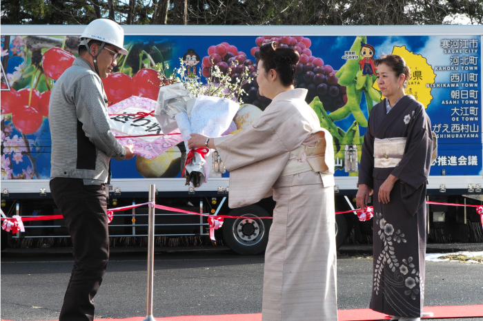 もちろん「啓翁桜といえば山形」といわれるよう、知名度アップに向けたPR活動も実施。僕も、全国に啓翁桜をアピールしちゃうペロ〜♪