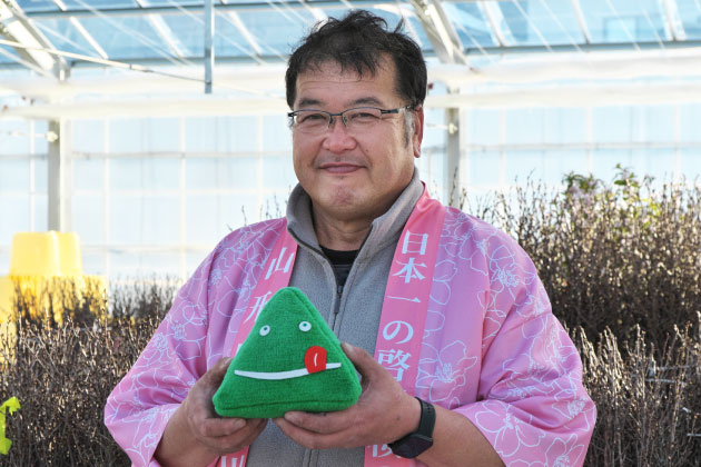 啓翁桜の栽培は春のカイガラ虫類の防除に始まり、肥料を施したり、枝の環状はく皮、園地の草刈り、追肥など、枝を切り出す秋までの間にも次々と作業が。組合長の金子さんは「西川町は高冷地で秋の訪れが早いため、啓翁桜はその分早く休眠に入って、早く目覚めさせることができる」と話してくれたペロ。