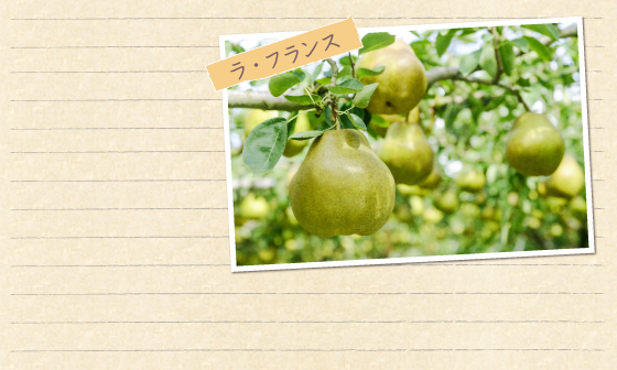 「ラ・フランス」は、山形県へは大正時代初期に入りましたが、見た目の悪さや栽培の手間から、受粉樹とされていました。昭和45年ごろから缶詰より生のフルーツの需要が高まり、食味の良い「ラ・フランス」に注目が集まりました。
