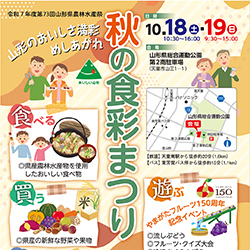 第73回山形県農林水産祭「秋の食彩まつり」 場所:山形県総合運動公園第2南駐車場(山形県天童市) |