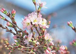 雪景色の中でも満開の桜が楽しめる啓翁桜。各地で啓翁桜を見ることが出来ます。