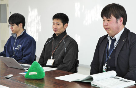 左より西川町の渡邊課長・鈴木課長補佐とJAさがえ西村山の小野課長補佐。